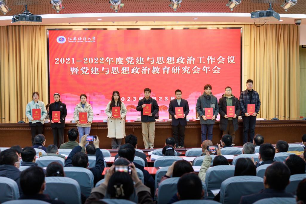 2月23日,江苏海洋大学2021-2022年度党建与思想政治工作会议暨党建与思想政治教育研究会年会在会议中心黄海厅召开。会议总结两年来学校党的建设和思想政治以及研究会的工作,研究部署下一阶段工作任务,并表彰了一批先进集体和先进个人。我院喜获2021-2022年度江苏海洋大学文明单位,机械工程系获评2022年课程思政教学研究示范中心,高勇老师的论文获评党建思政优秀研究成果二等奖,1个学生作品获评“我们这十年”校园优秀网络文化作品三等奖。这些成绩的取得集中体现了我院党委近年来在党建与思想政治工作方面取得的一系列新进展。